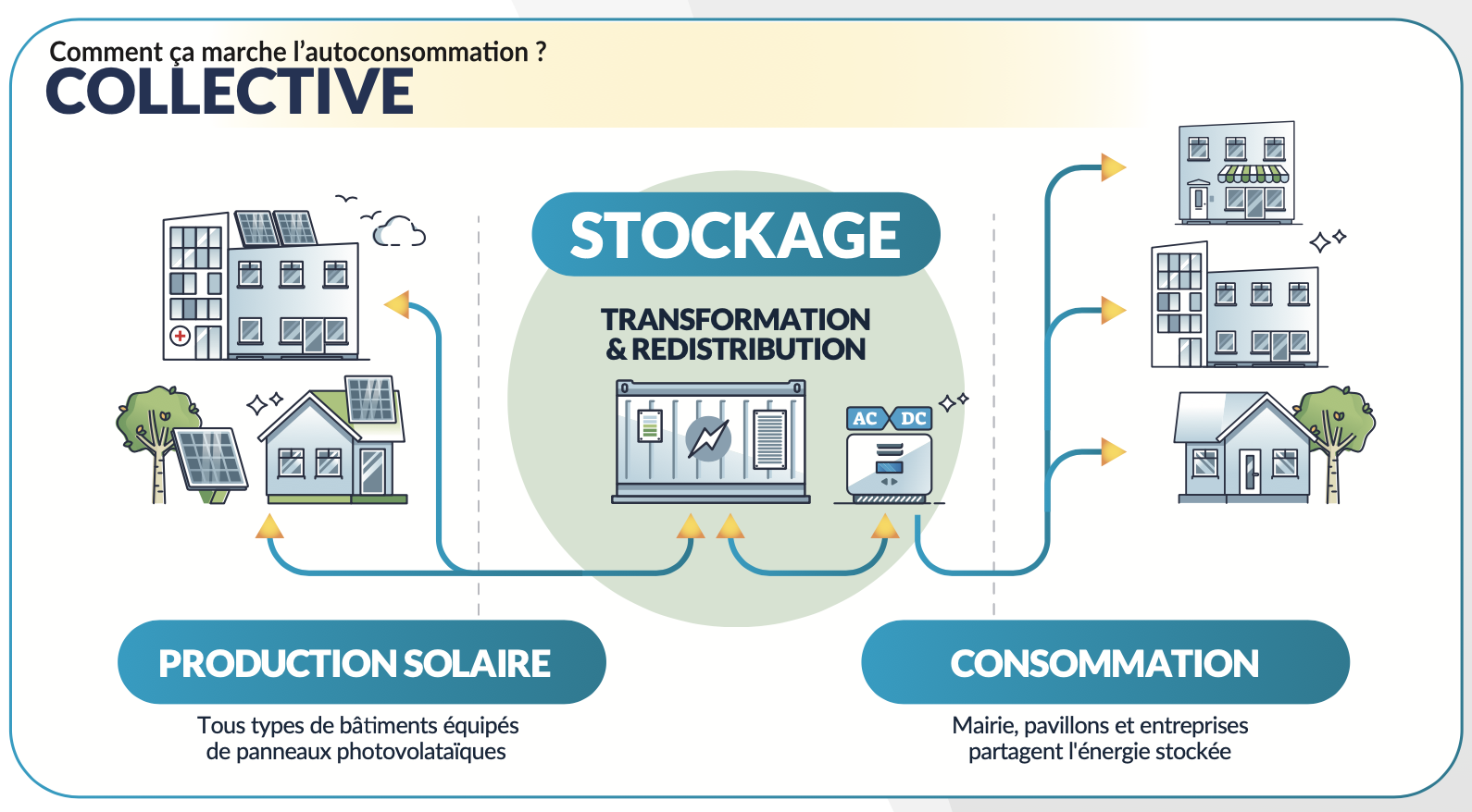 Dans un monde où l’énergie est un enjeu stratégique, l’autoconsommation collective (ACC) est la solution idéale pour maximiser l’utilisation locale de votre production photovoltaïque. L’installation de batteries joue un rôle clé en optimisant cette approche, en permettant de stocker l’énergie produite pour une utilisation différée et en maximisant vos économies.